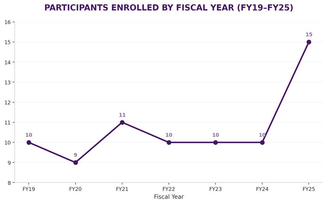 For context, enrollment had remained relatively stable at around 10 students per year since 2018. The jump to 15 in 2025 signals both increased interest from students and increased capacity to meet that interest head-on.